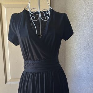 Chic black maxi dress by Alfani. Features short sleeves and a flattering wrap design. Perfect for any occasion.