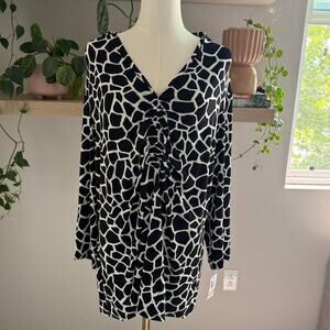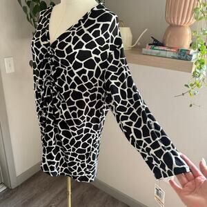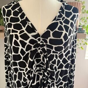 Alfani Black & White Giraffe Animal Print Ruched Womnes Top 3X Office Career Y2K