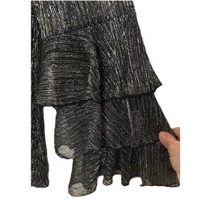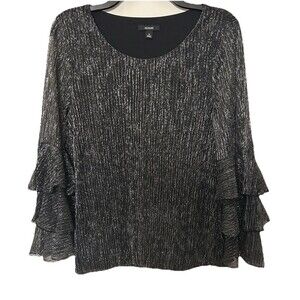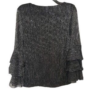 Alfani Black With Silver Accents Ruffle Tiered Sleeves NWT Size M