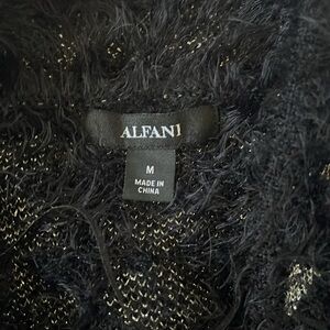 Alfani Black and Gold Fuzzy Open Front Sweater SZ M