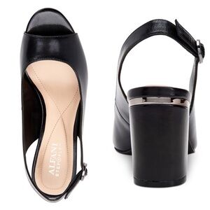 Alfani's Floraa dress sandals are a beautiful blending of modern savvy and vintage inspiration boasting a timeless slingback profile set atop a chunky block heel with metallic accents for a wonderful finish.