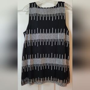 Chic tank top with bold black and white design. Ideal for versatile styling.