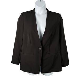 Alfani Blazer Womens Large Black One Button Shoulder Pads Unstructured Office