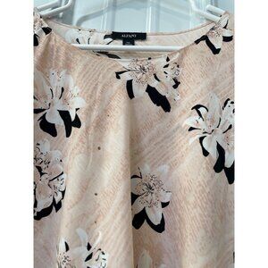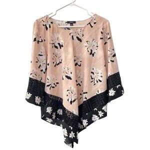 Alfani Blouse Size XL Petite Floral Crochet Trim V Hem Top Pink Black Bohemian