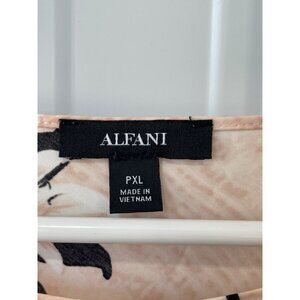 Elegant Alfani women's top in pink floral print with black crochet and floral trim. Lightweight, flowy design in plus size PXL, made from soft materials.