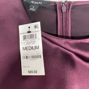 Alfani Blouse Top Bateau Neck Berry Jam Purple Zippered Back Side Slits Size Medium Satiny Romantic Holiday Party Dressy