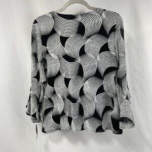 Alfani Blouse Women's Petite Med Black And White Pattern Long Bell Sleeve NWT