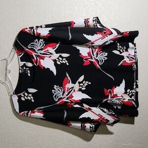 Alfani Blouse Womens Small Top Floral Black White Tan Red Career