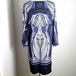 Alfani Blue, Black, Gray, White Printed Design Shift Dress, Size Medium