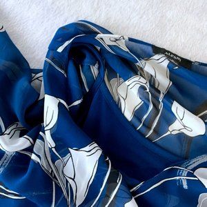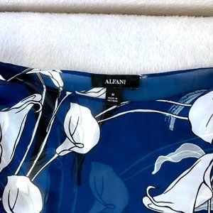 Alfani Blue Botanical Print Pullover Flowy Blouse