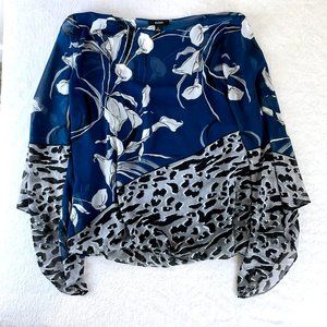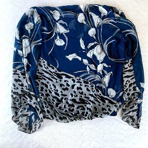 - Blue floral lily and animal print snow leopard flowy blouse with attached camisole. Gorgeous and comfortable, easy dressy top!