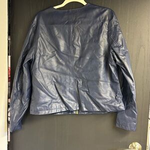 Alfani Blue Leather Jacket Sleek Motorcycle Style women’s XL