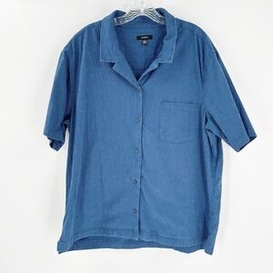 Alfani Blue Striped Cotton Regular Fit Short Sleeve Button-Up Shirt Size XL