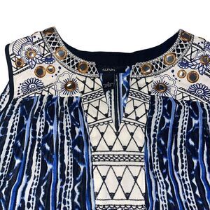 Alfani Blue & White Sheer Embroidered Tank Top - Size 8