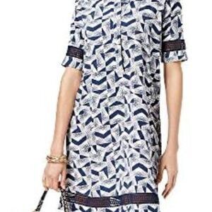 Alfani Blue and White Geometric Pattern A-Line Shift Dress Size 8