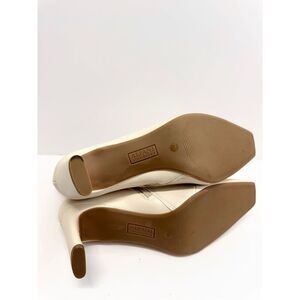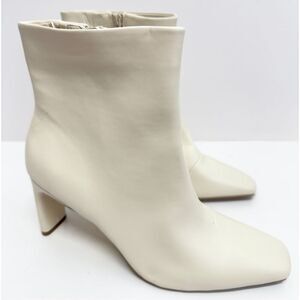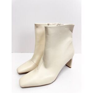 Alfani Boots Size 11 Cream Square Toe Block Heel Faux Leather Rubber Sole