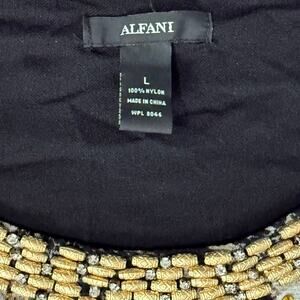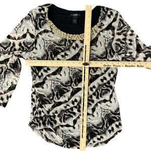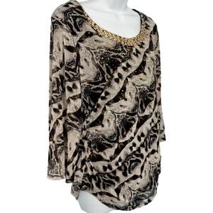 Alfani Brown Cream Animal Print Long Sleeve Beaded Scoop Neck Blouse Top size L