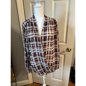 Alfani Burgundy Long-Sleeve Drape-Front Plaid Blouse 16W Retails For $69.5