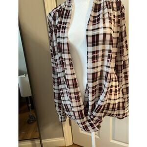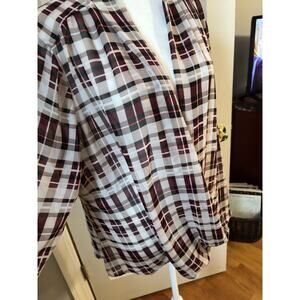 Alfani Burgundy Long-Sleeve Drape-Front Plaid Blouse 16W Retails For $69.5
