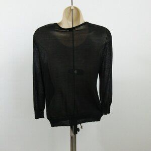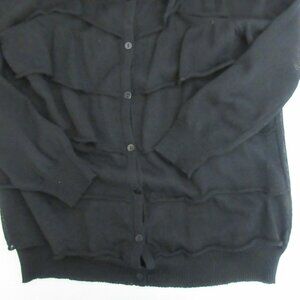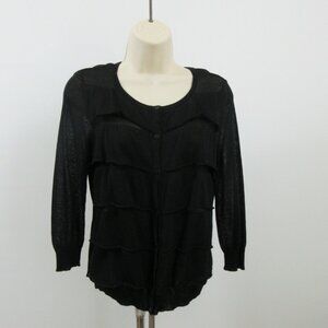 Alfani Cardigan Sweater Black Sz XS 3/4 Sleeve Button Front Overlay Rows Detail