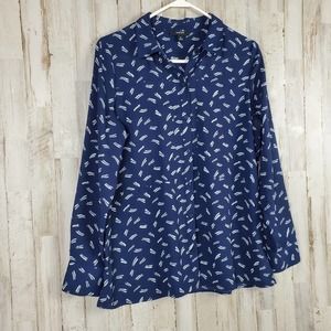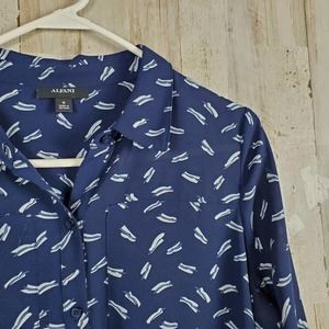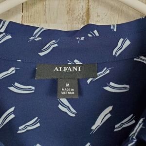 Alfani Casual Formal Button Up Printed Blouse Size Medium Women Blue