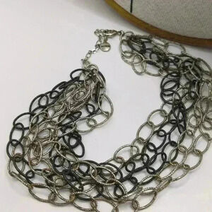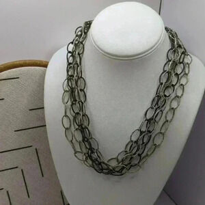 Alfani Chainlink Necklace multiple strands Gunmetal Gray black silver