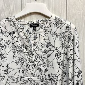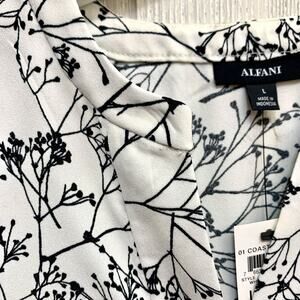 Alfani Coastal Mode Baby Breath White Black Floral Top Large NWT