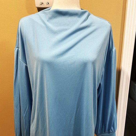 Alfani Cornflower Blue Long Sleeve Loose Bantu Neck Blouse SZ Large