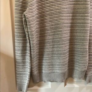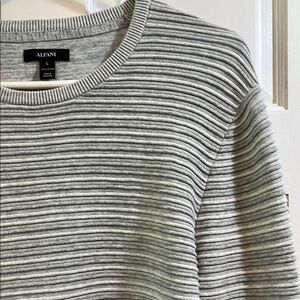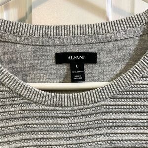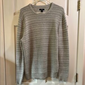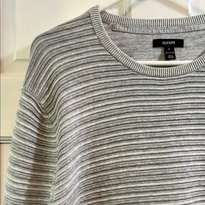 Alfani Cotton Gray Crewneck Sweater with Textured Ribbed Stripes - Size Large