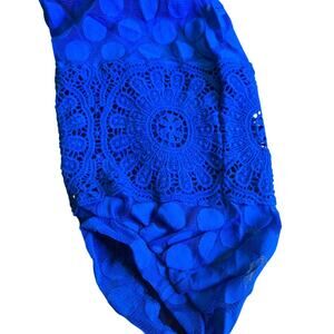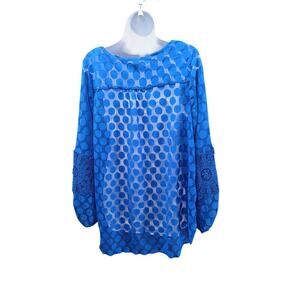 Alfani Crochet sleeve detail polka-a-dot Woman blouse blue Size 1X Office boho