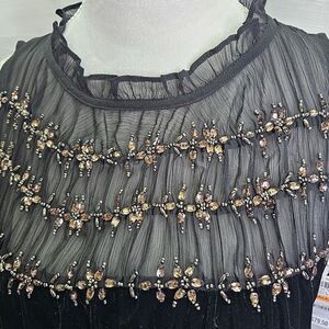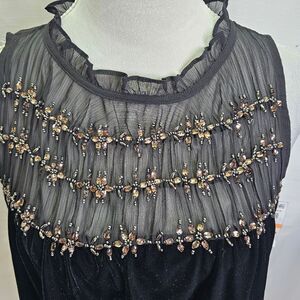 Alfani Deep Black Rose Shimmer Sleeveless Velvet and Jeweled Top Size Small