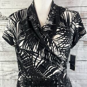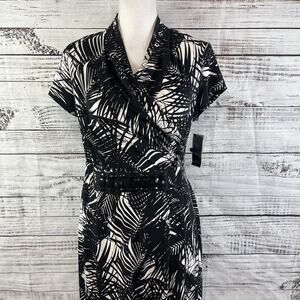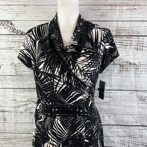 Alfani Dress size Small Black White Tropical Palm Trees Slinky Boho Wedding Slim
