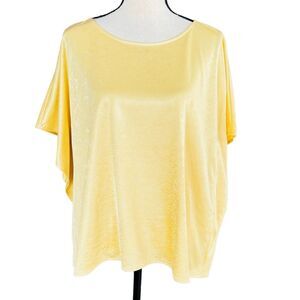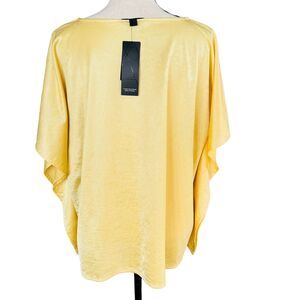 Alfani Elements Medium Top Stretch Draped Sleeves Scoop Neck Raffia Yellow Shiny