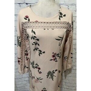 Alfani Embroidery Light Pink Floral Women Dress Zipper Back Size 8