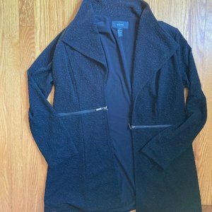 Stylish Alfani jacket. Made out of textured black fabric with decorative zippers.
