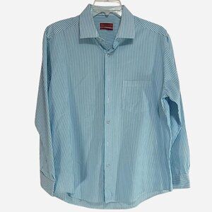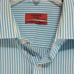 Alfani Fitted Blue and White Striped Button Up Shirt, XL (34/35)