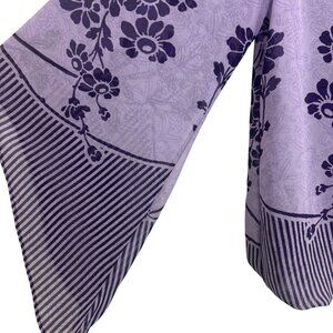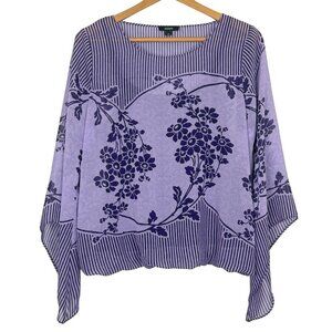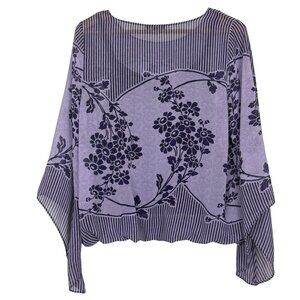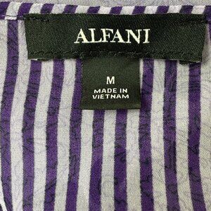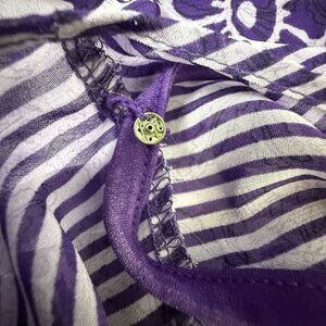 Enhance your wardrobe with this Alfani cami/shell top featuring an elegant floral/striped design, flattering angel sleeves, and a bubble hem. Perfectly versatile, stylish, and comfortable. The purple cami is part of the blouse with the straps held in place with snaps. Fabric is semi-sheer