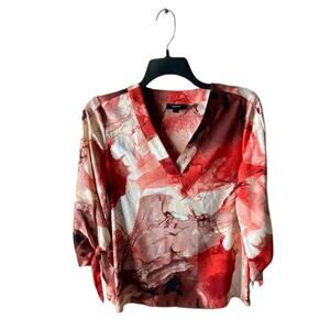 Alfani Floral Tie-dye Blouse Women Size Medium Tie Sleeves Top