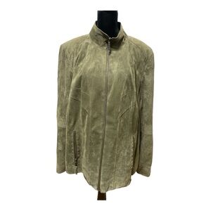 Alfani Genuine Leather Dark Olive Suede Jacket Size 2X Fitted Dressy