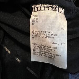 Alfani Geometric Black Tunic Top Semi Sheer Sleeve & Hem Size M. Lining under the main body.