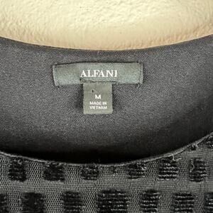 Alfani Geometric Black Tunic Top Semi Sheer Sleeve & Hem Size M