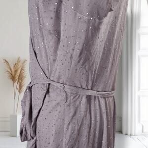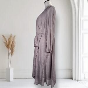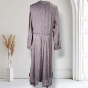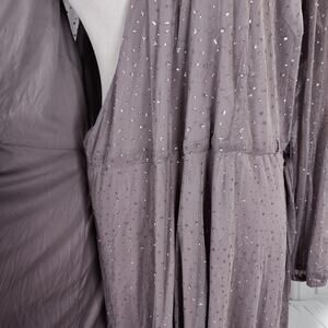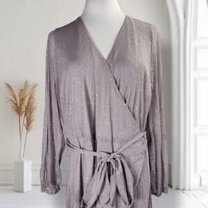 Alfani Glitter Mesh Wrap Dress 2X Silver Long Sleeve Plus Size Party Midi