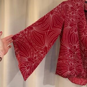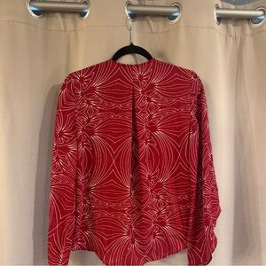 Stylish red blouse with a unique pattern. Perfect for any occasion.