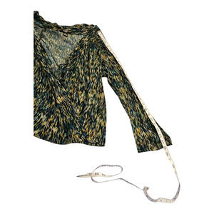 Large Petite Long Sleeve Multicolor Open Cardigan is used with a bit of wear to the fabric but still in good condition. Brand is Alfani, material is 95% polyester and 5% spandex. Measurements are included in the pictures above.
