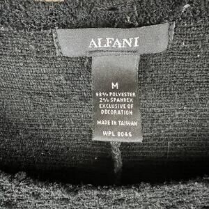 Alfani Layered-Look Sequined Sweater Black Textured Women's Size M. A pullover knit sweater that shimmers when you walk, with sequins and textured threading! A black sheer ruffled hem.