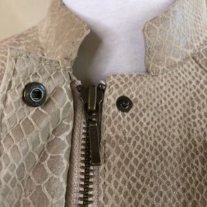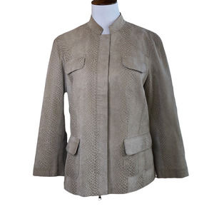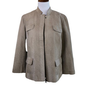 Alfani Leather Jacket Beige Reptile Snake Skin Zip Front MP