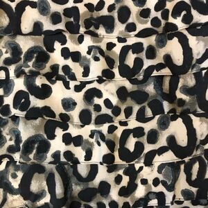 Black Gray and Tan Leopard Print with a Black Elastic Waistband, Back Zipper and Ruffle detail