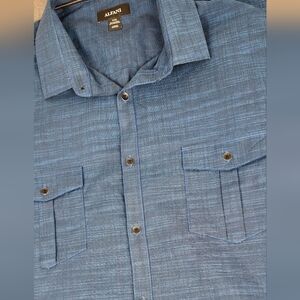 Great condition. No signs of wear. Alfani Lightweight Blue Woven Style Double Pocket Button Down Shirt. XXL