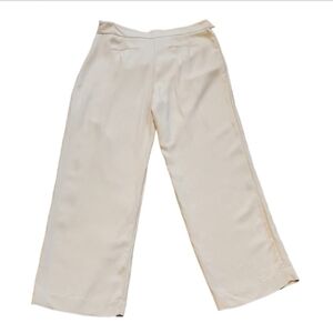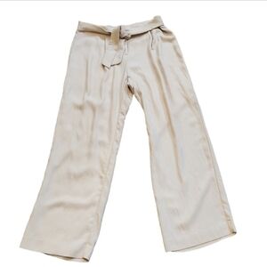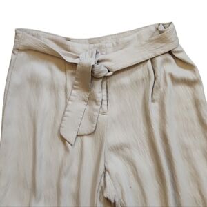 Front and back pockets with eyelette and zip closure. Tie waist for a perfect fit and extra decorative detail. These are a linen feel, with a slightly heavier weight.