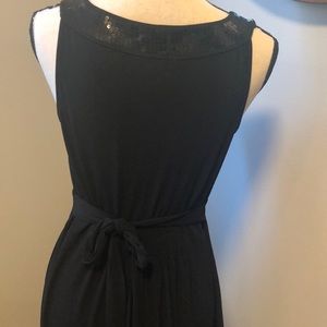 Alfani Black dress with sequined V neckline Perfect little black party dress Ladies size medium Flattering fit with tie waist